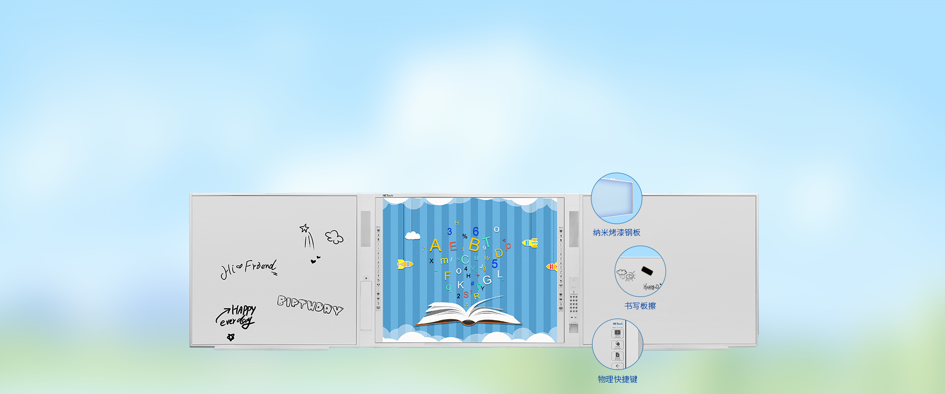 华创智航红外系列白板一体机是集电子白板、中控、电脑、高拍仪等多种设备于一体的多媒体智能教学产品,外形简洁大气。